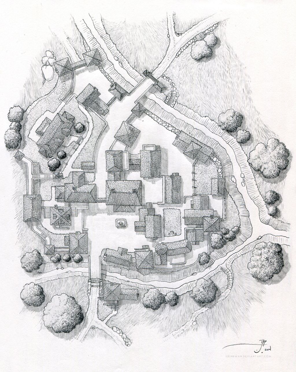 General layout The first. Start by drawing the rough outlines of your village with a mechanical pencil. If you have a story to model your map after you will likely have locations and a general idea of what it will look like already.