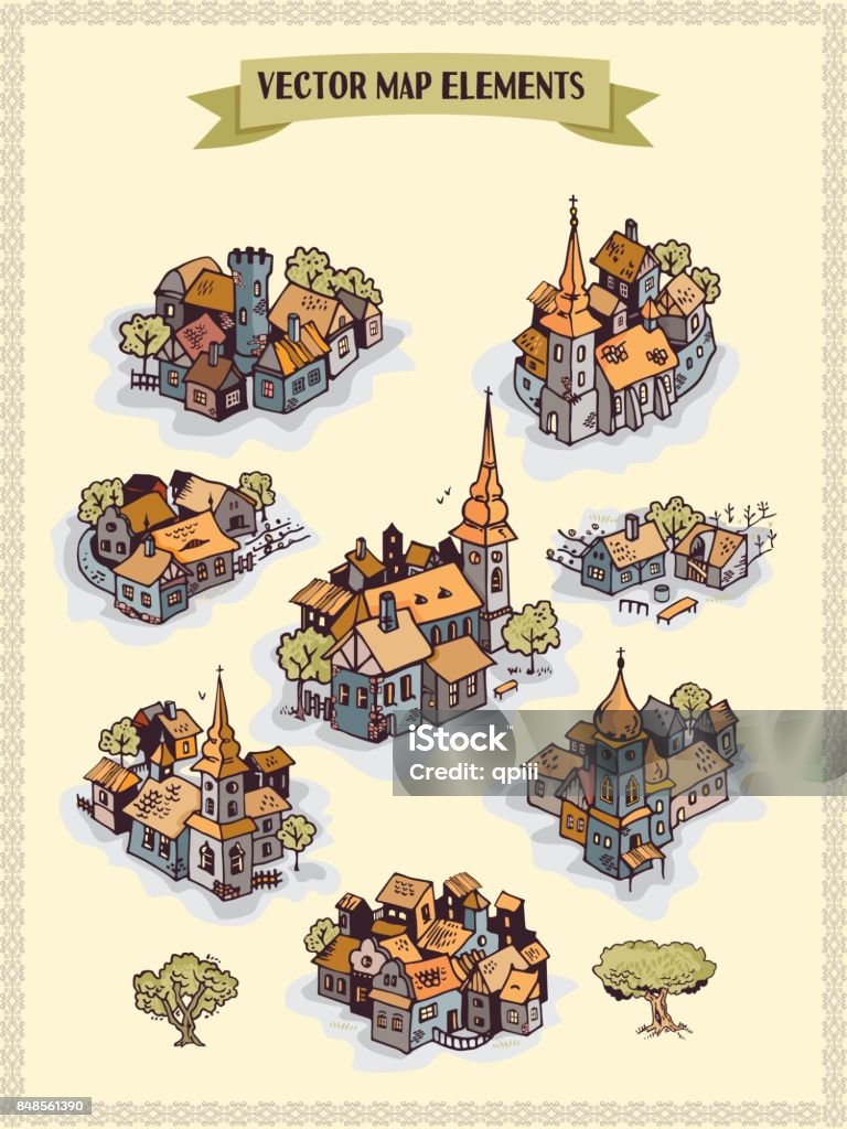 Vector Map Elements Colorful Hand Draw Settlement City Village Stock Illustration Download Image Now Istock